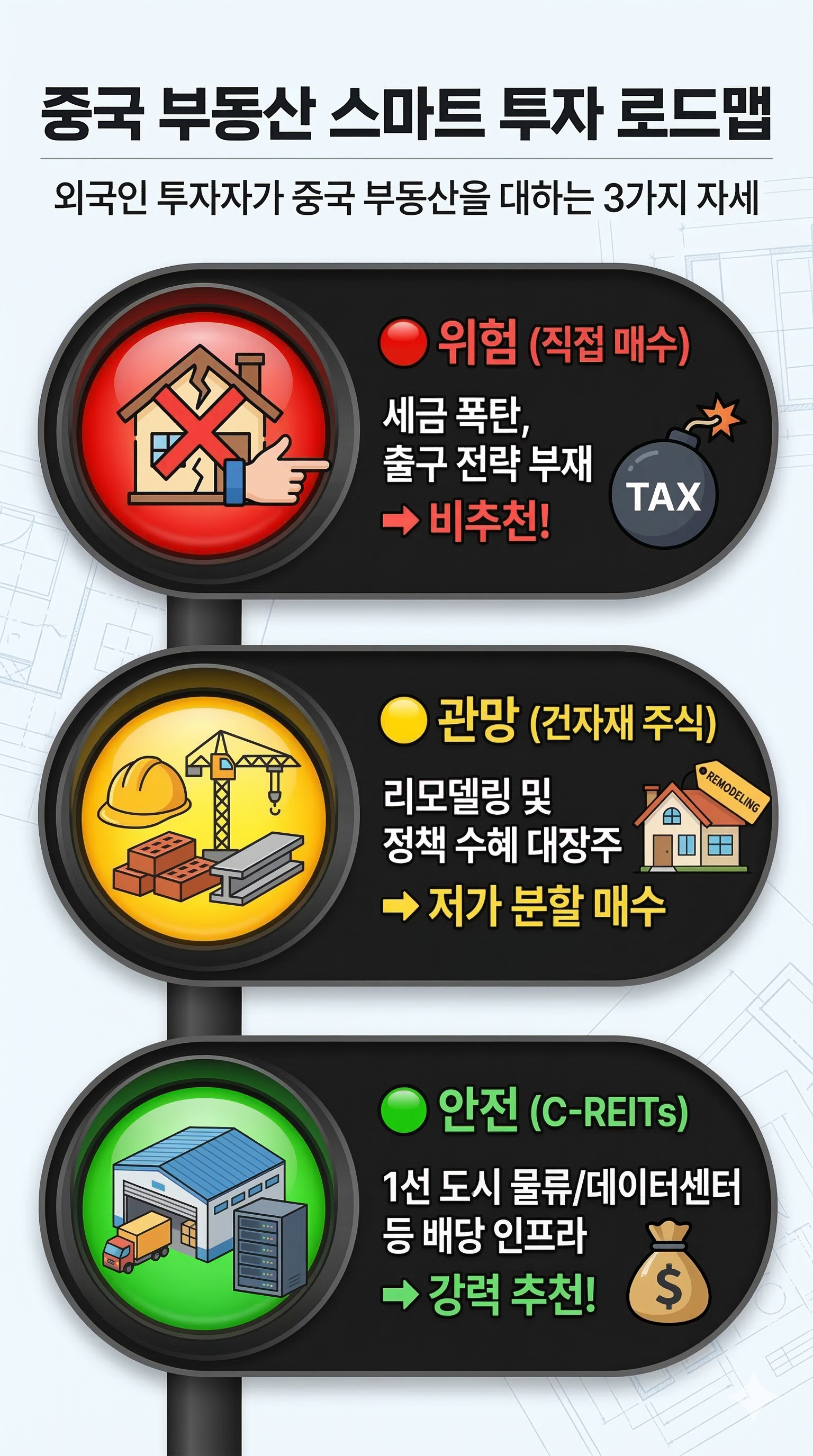 - 투자 포인트: 아파트 미분양 리스크와 무관하게, 알리바바나 징동 같은 거대 기업이 임대료를 내는 핵심 물류 창고나 1선 도시의 데이터 센터 지분에 투자하는 것입니다.