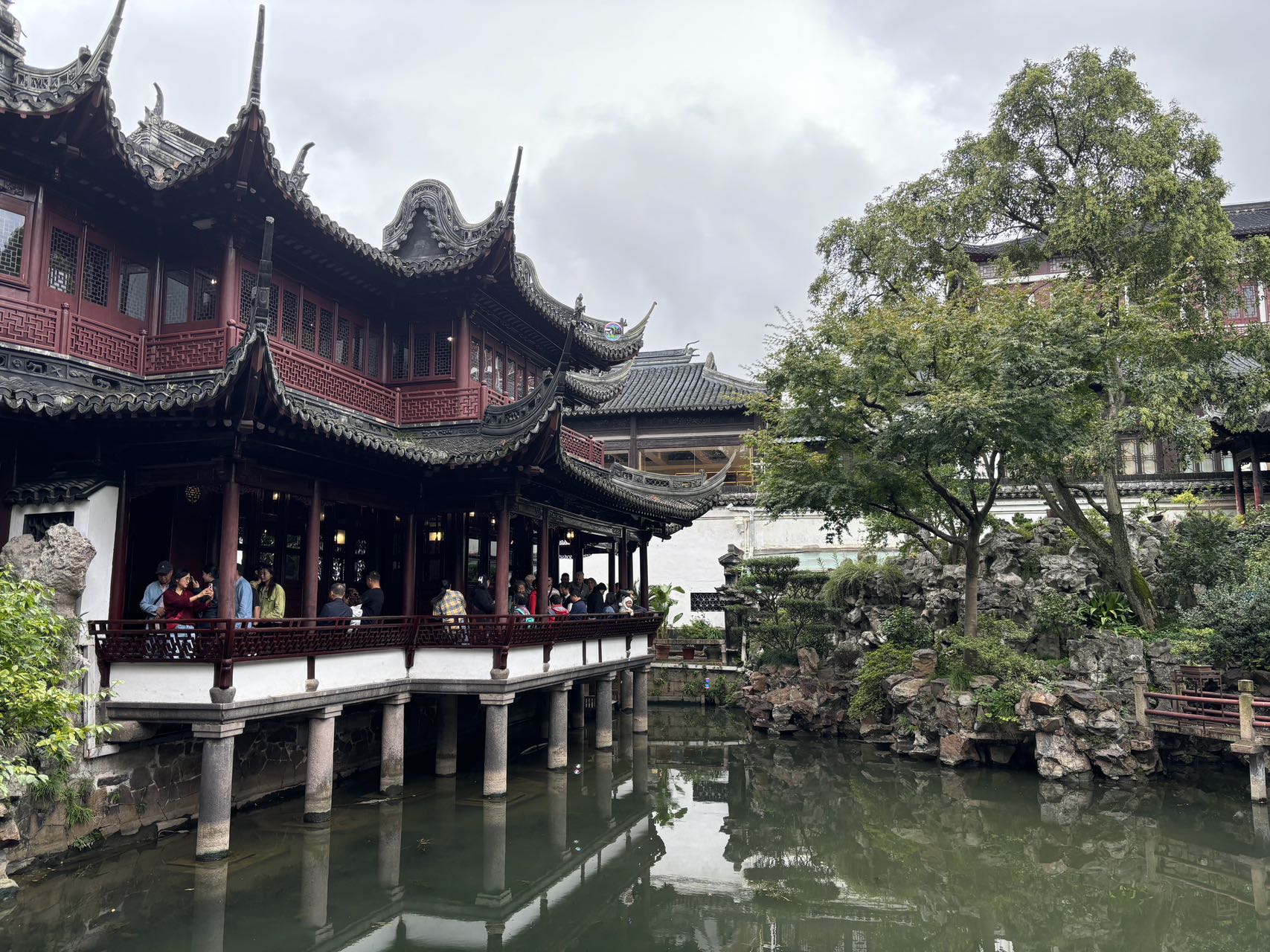 예원의 건축과 조경은 중국 전통 정원의 특징을 잘 보여주는 명작입니다. 정원 곳곳에는 인공적으로 조성된 연못과 호수가 있으며, 파빌리온과 섬세하게 설계된 다리들이 어우러져 고전적인 중국 정원의 정취를 느낄 수 있습니다. 이 정원의 모든 요소는 자연과 인간의 조화를 강조하며, 마치 자연 그대로의 아름다움을 옮겨 놓은 듯한 인상을 줍니다.