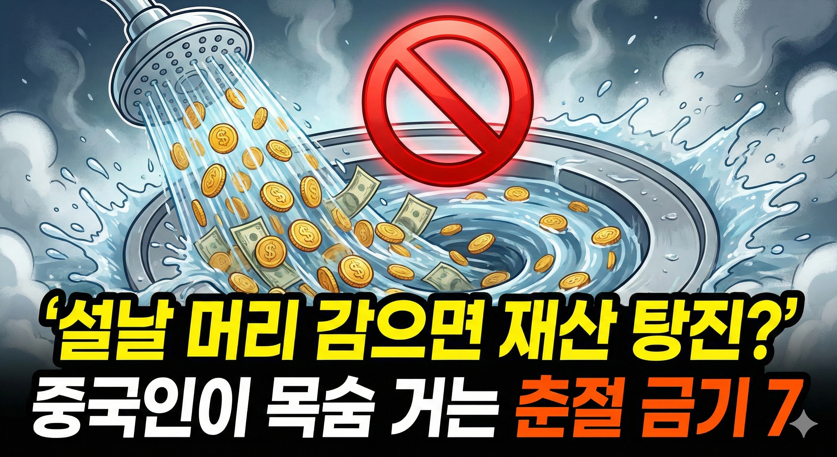 • 이유: 중국어로 머리카락(发, 파)은 부자가 된다는 '파차이(发财)'의 '파'와 발음이 같습니다. 즉, 머리를 감는 건 **"들어온 재물운을 물로 씻겨 내버리는 행위"**입니다.