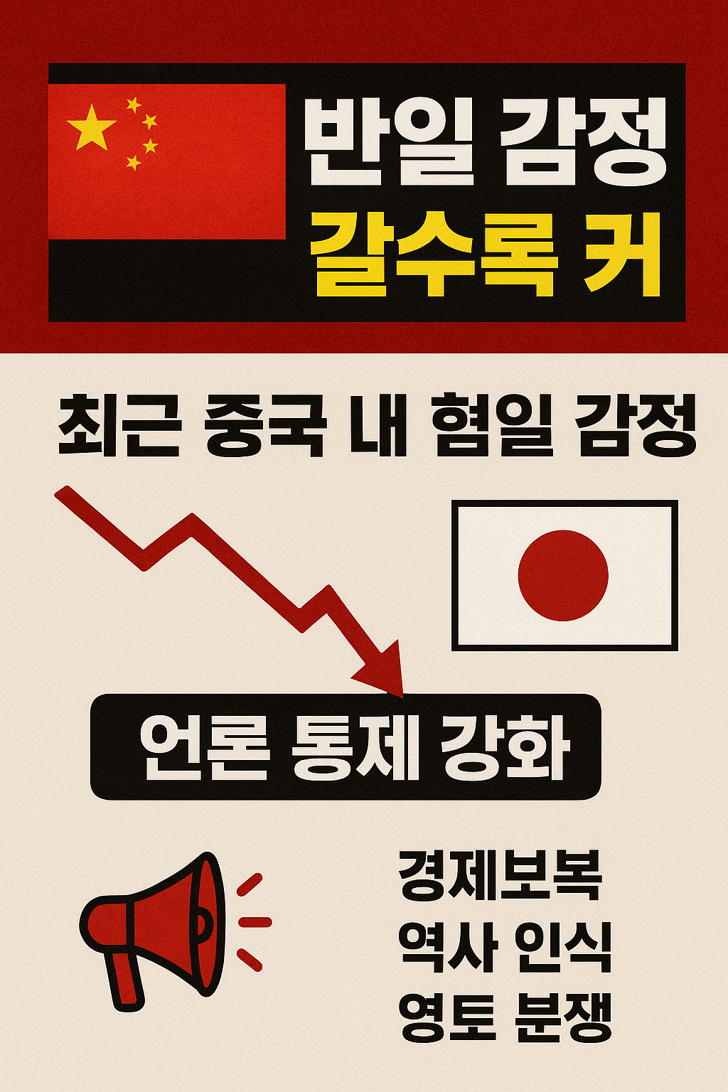 아래에서 중국 내부 변화, 사회적 심리, 정책적 배경, 일본과의 갈등 구조, 한국과의 비교 분석까지 깊이 있게 정리해본다.
