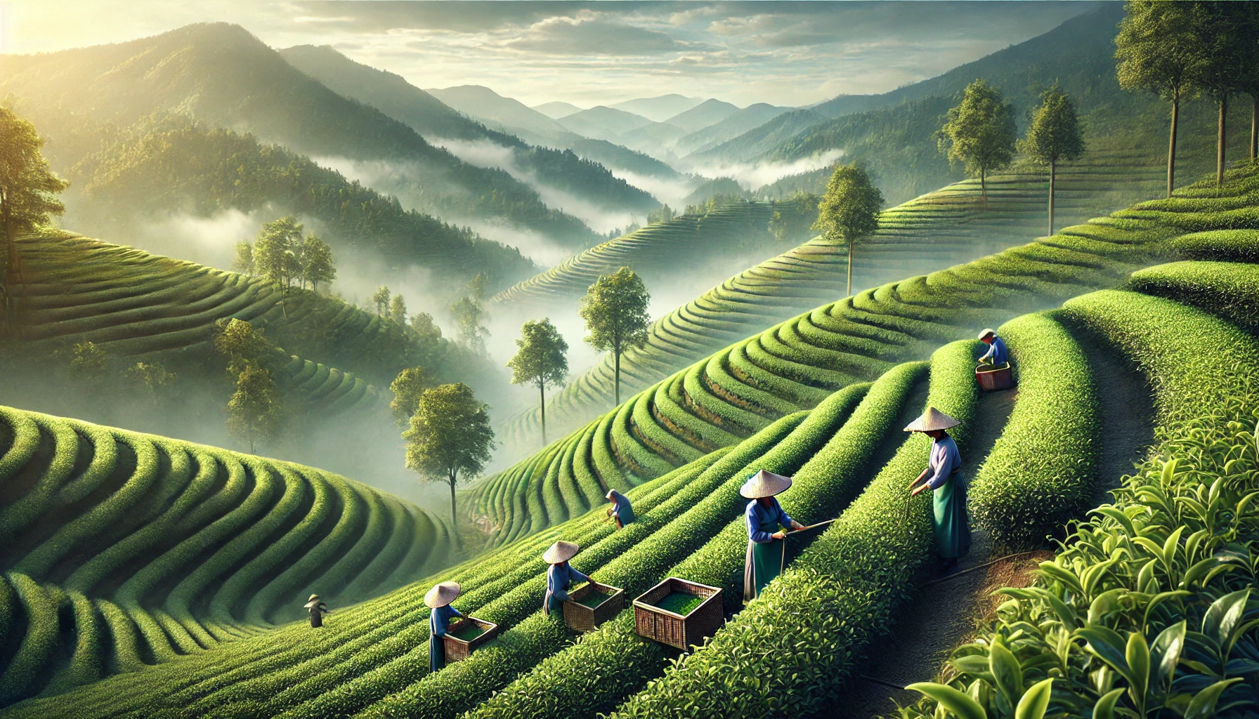 - 찻잎 채집: 고산지대에서 자란 찻잎을 손으로 따냅니다.