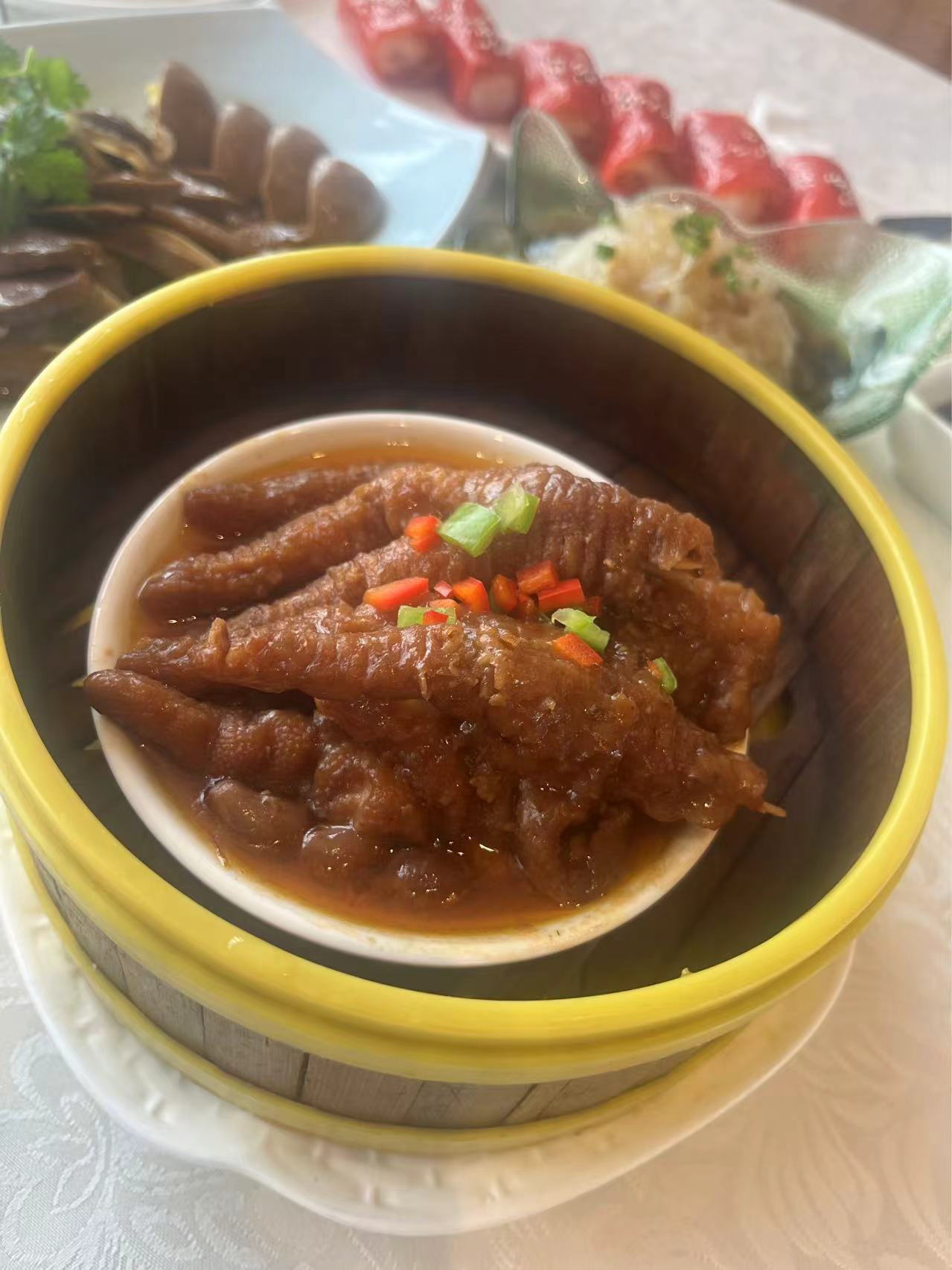펑좌는 닭발을 간장과 향신료에 졸인 후 찐 요리입니다. 딤섬 중에서도 독특한 식감과 강렬한 풍미를 자랑하는 메뉴로, 닭발의 쫀득쫀득한 질감과 매콤한 맛이 특징입니다. 외국인들에게는 다소 생소할 수 있지만, 중국에서는 오랜 전통을 자랑하는 인기 있는 딤섬입니다. 닭발의 뼈를 제거한 후 천천히 우려내듯 조리하여 맛이 깊어지며, 그 진한 소스는 딤섬 애호가들의 입맛을 사로잡습니다. 펑좌는 광둥 지역의 얌차에서 특히 인기가 높습니다.