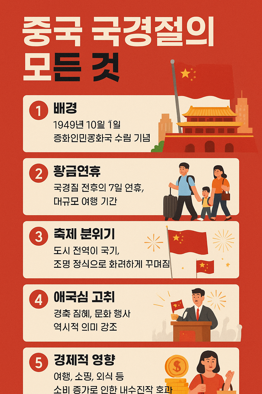 한국에서도 중국과의 무역, 여행, 유학, 비즈니스 등 다양한 접점이 있는 만큼, 국경절을 이해하는 것은 단순한 상식 이상의 가치를 가진다.