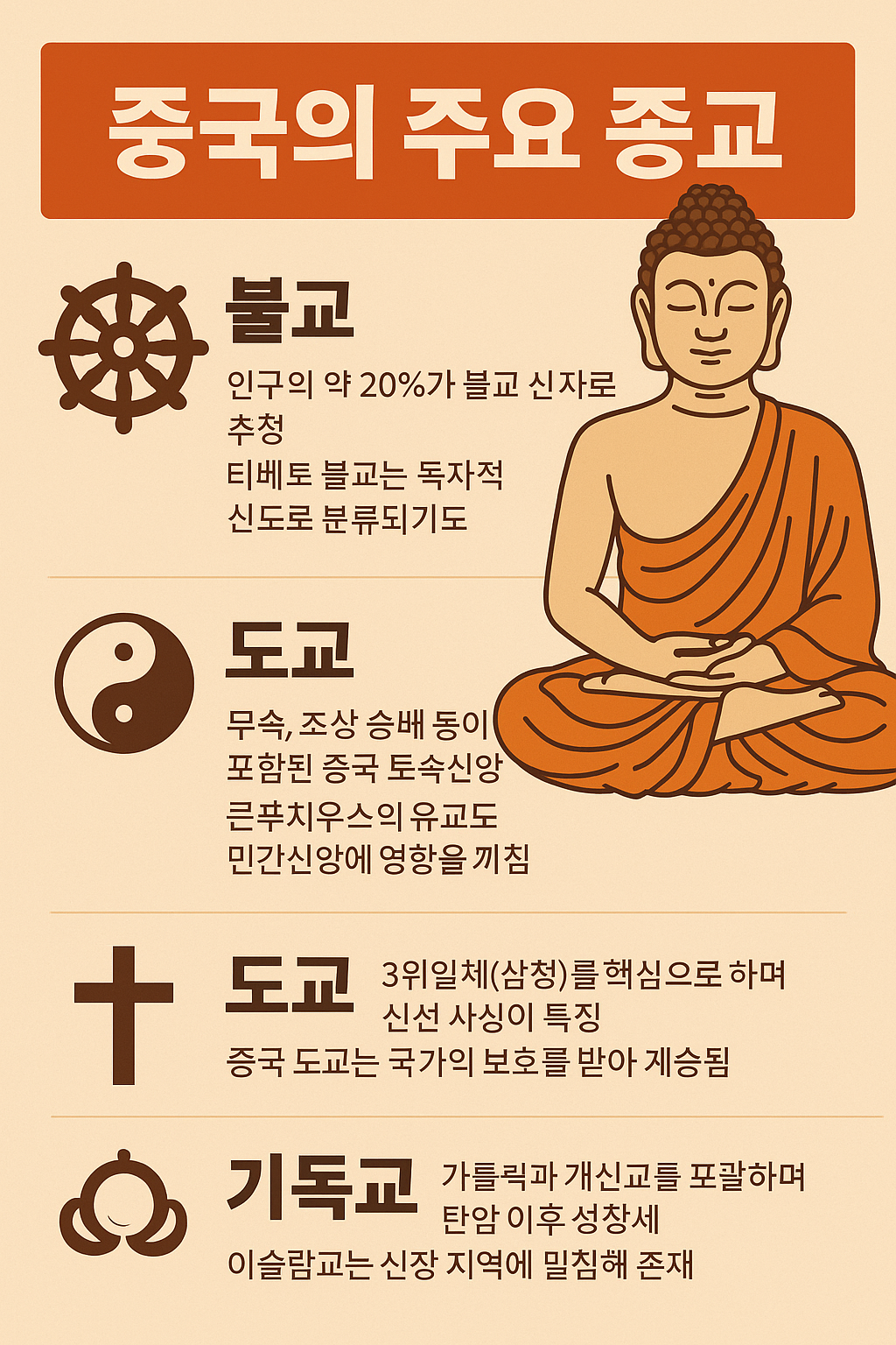 이번 글에서는 중국 종교의 역사적 뿌리, 현대 공산당 체제 아래의 종교 정책, 그리고 불교·기독교·도교 등 주요 종교별 현황까지, 다층적으로 분석해 보겠습니다.