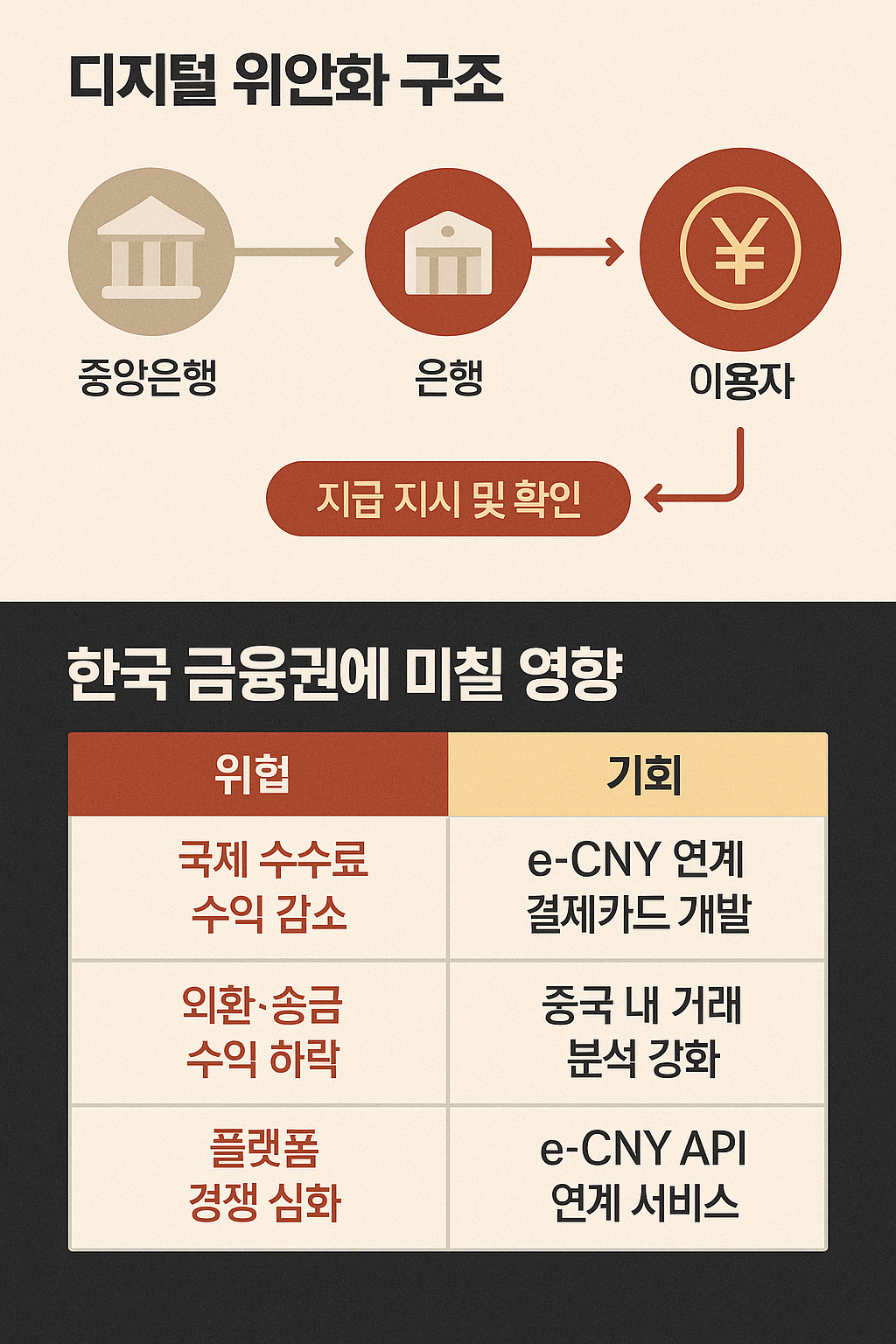 한국의 카드·송금 산업은 알리페이·위챗페이에 이어 e-CNY에 종속될 위험이 있다.